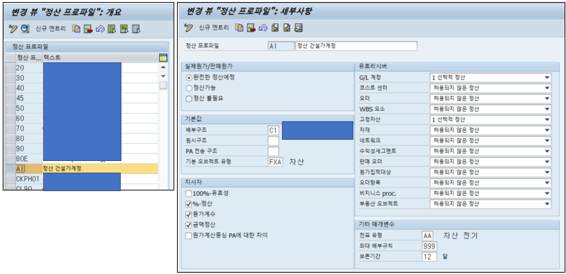 OKO7 (정산 프로파일 유지보수) 에서 정산 프로파일 유지 보수 가능
