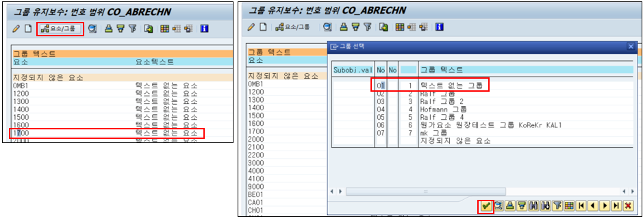 대상 관리회계영역 1700에 그룹을 지정하고 저장
