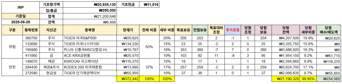 ::경제적 자유:: 2025년 7월 IRP(자산배분) 계좌 현황 (0) | 2025.07.25 |