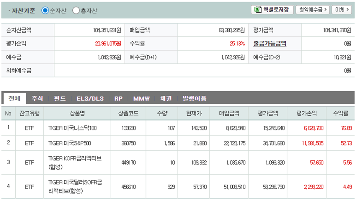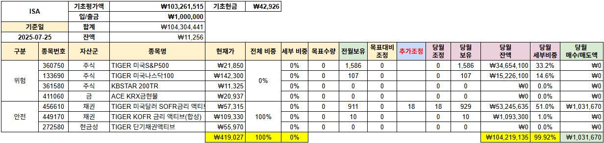 기초평가액: ₩103,261,515 ( 처음으로 평가액이 1억을 초과 했습니다!! )