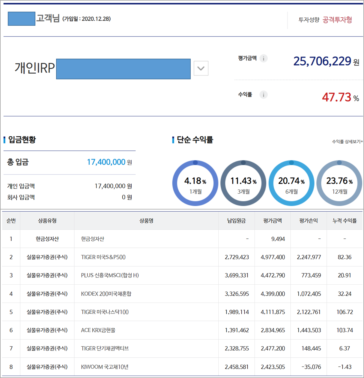 | ::경제적 자유:: 2025년 7월 IRP(자산배분) 계좌 현황 (0) | 2025.07.25 |