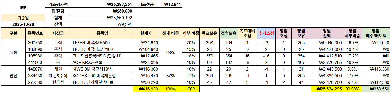 | ::경제적 자유:: 2025년 9월 IRP(자산배분) 계좌 현황 (0) | 2025.09.29 |