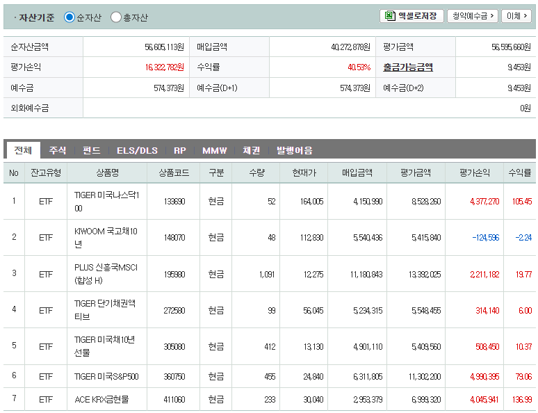 3. 안전자산 30% = 국고채 10년: 10% + 미국채 10년: 10% + 단기채권: 10%