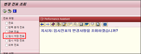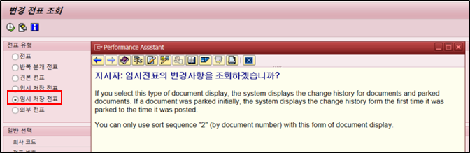 지시자: 임시전표의 변경사항을 조회하겠습니까?
